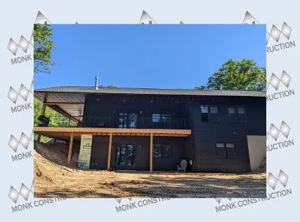 Designed by Trout Creek Drafting & Design, this lake house near Rhinelander is 100 percent completed after installing the entry door we ordered nearly one year ago, a few supply-chain issues from COVID. Black siding, roof, windows, black everything except the cedar deck and wood tone doors. Construction was provided by Monk Construction LLC. Contact us if you're thinking of building a home or cottage in the Northwoods!