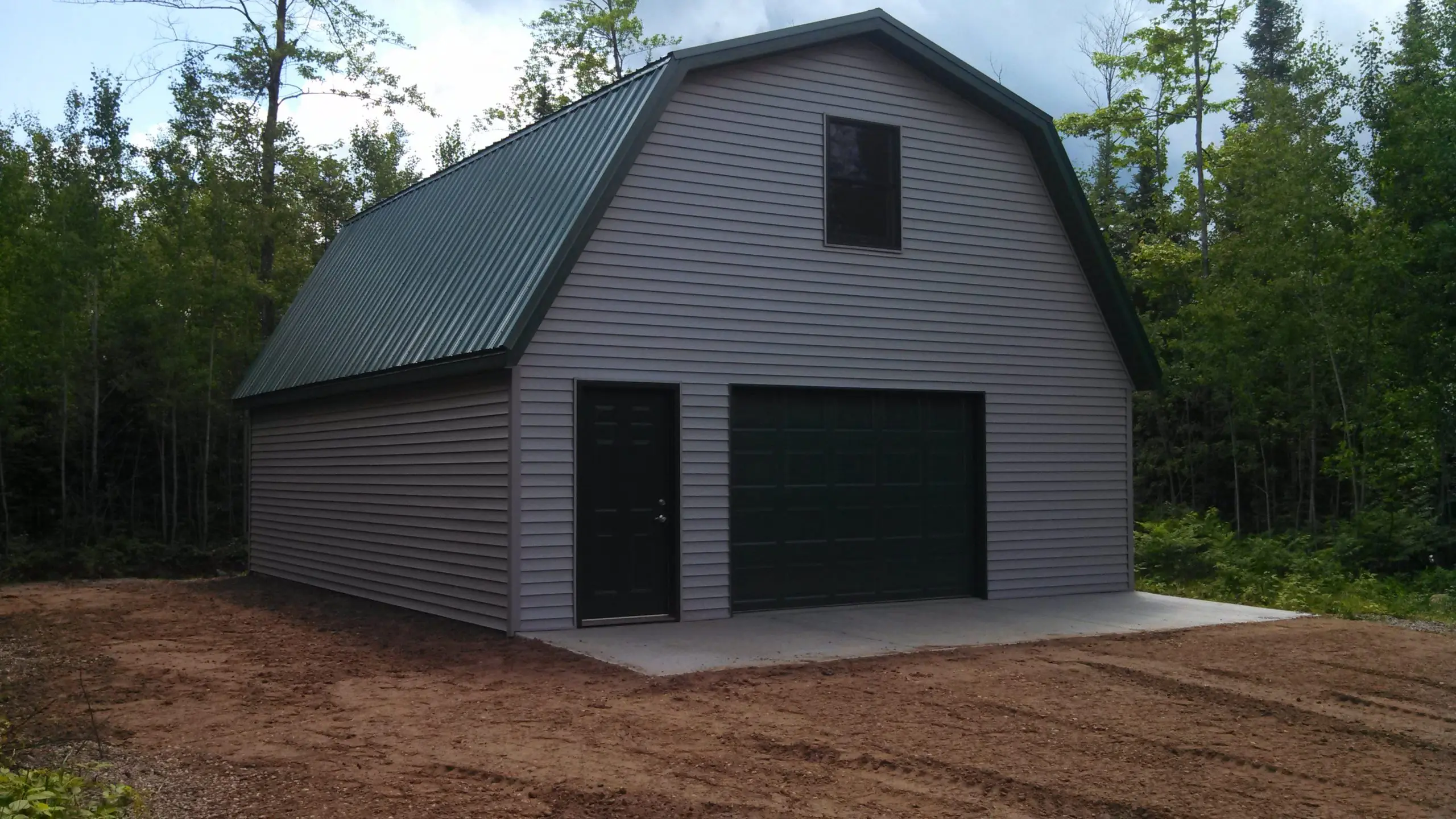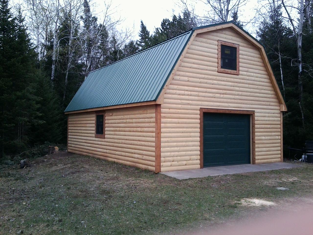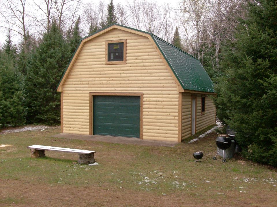 We designed this spacious Gambrel full attic garage to meet all our customers requirements. It was constructed in 2014 by "Monk Construction LLC" of Rhinelander. It has a 12/12 pitch roof, full attic and is finished off with half-log siding and a steel roof. If this design or something similar may fit your needs, please reach out to discuss. As always, we look forward to hearing from you!