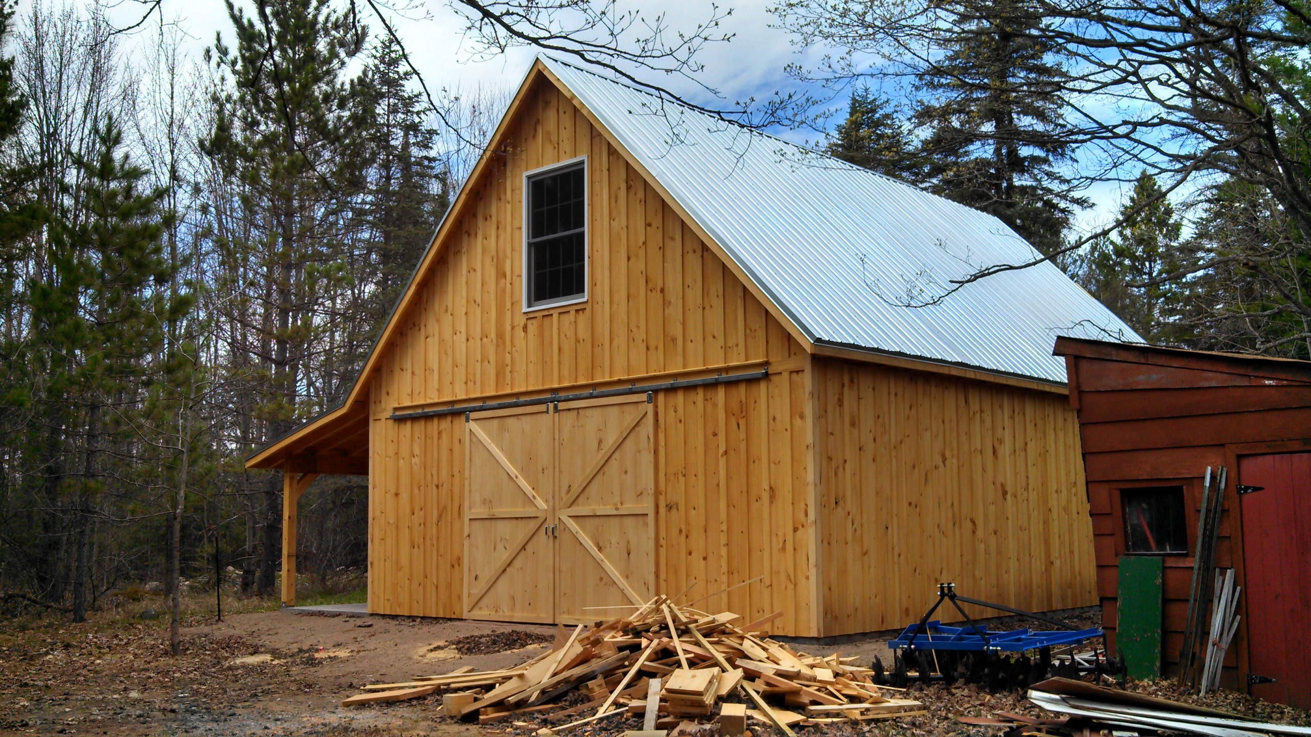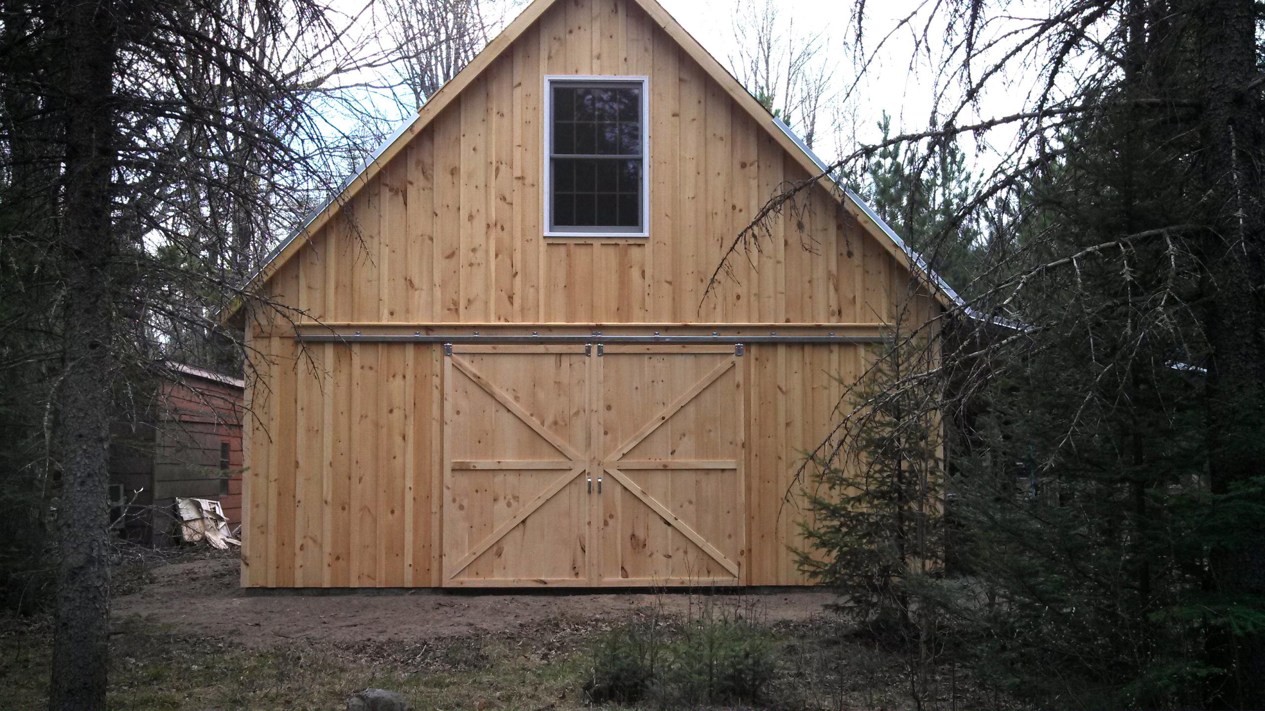 Check out this beautiful 30x36 Barn Style Garage designed by our firm in early 2015. It was constructed by Monk Construction LLC and is located in Tomahawk, Wisconsin...also in 2015. It was built using a post and frame structure, all rough pine, with a steel roof and sliding barn doors. Feel free to review our other designs or contact us via our contact information. We look forward to working with you!